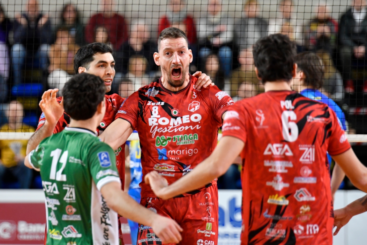 Tinet Prata di Pordenone – Romeo Sorrento 3-0 (25-20, 25-20, 25-17) – Tinet Prata di Pordenone: Alberini 2, Terpin 9, Scopelliti 5, Gamba 20, Ernastowicz 10, Katalan 6, Aiello (L), Benedicenti (L), Meneghel 0, Bruno 0, Fusaro 1. N.E. Sist, Pillon, Umek. All. Di Pietro. Romeo Sorrento: Tulone 1, Parraguirre 5, Patriarca 7, Baldi 9, Pol 11, Petkov 1, Pontecorvo (L), Iurisci 0, Malavasi 1, Farcasiu (L), Ferrato 0, Fortes 2, Brignach 0. N.E. Alaia. All. Esposito. ARBITRI: Angelucci, Ciaccio. NOTE – durata set: 28′, 27′, 25′; tot: 80′.